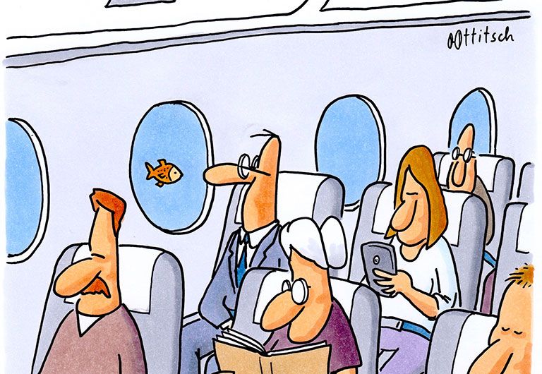 Treffen sich zwei Fische …und dann? der Betrachter kann sich überraschen lassen, wie die Szene in verschiedenen Humorarten aufgelöst wird.