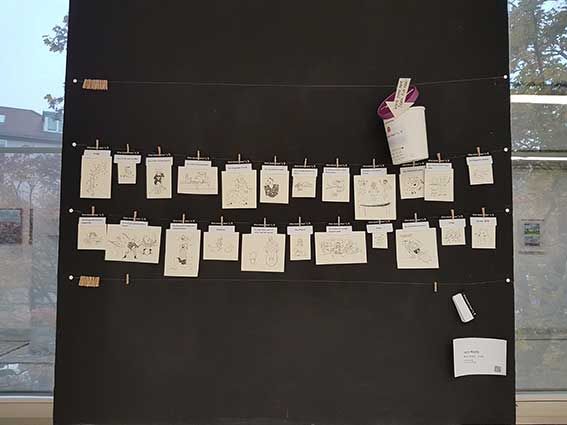 Wie bei einem Zeichenspiel auf instgram, so in der Lachanstalt live zum miterleben: Begriffe vom Publikum werden mit Humor und einem Augenzwinkern umgesetzt und kommen auf die Leine.