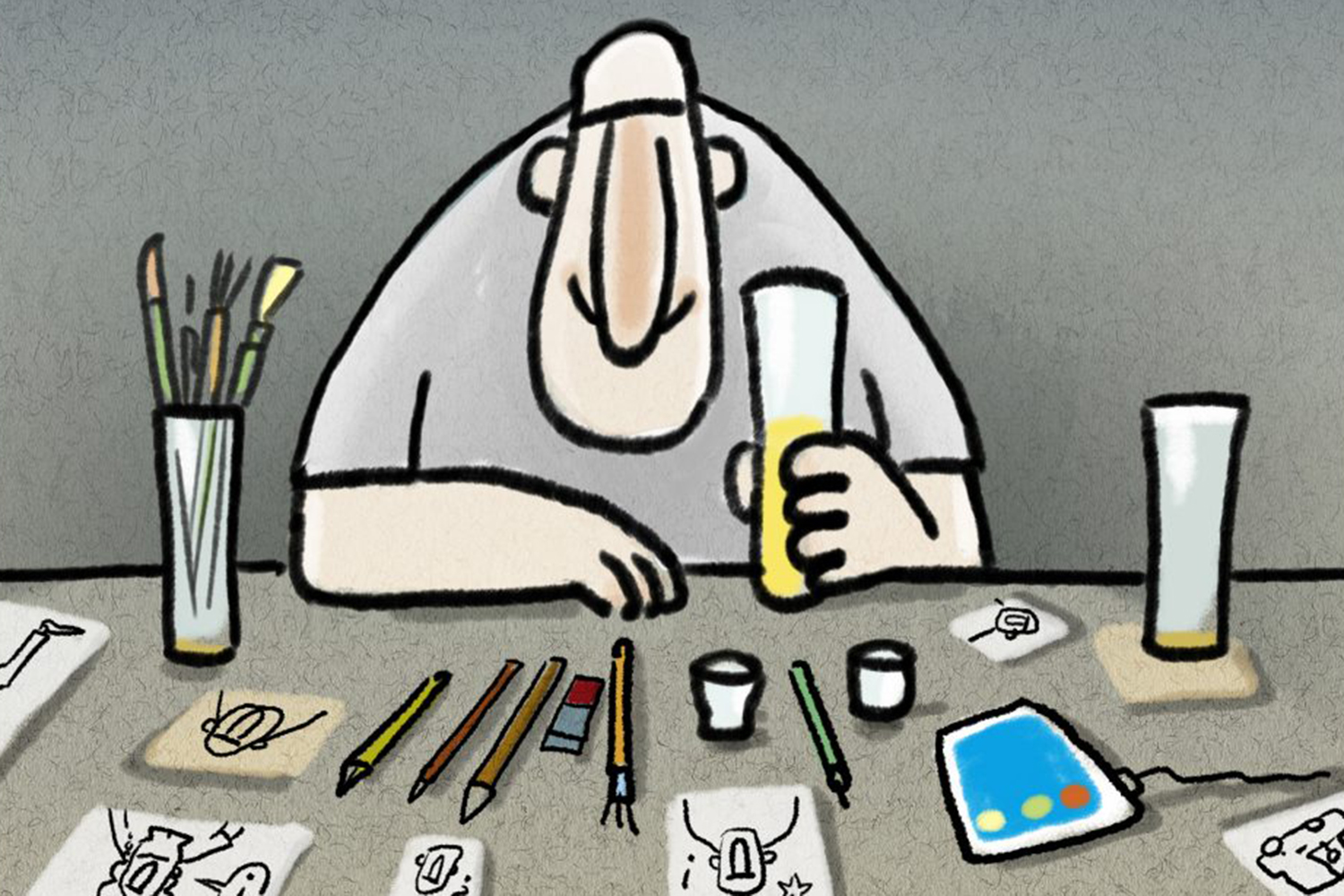 Am HUMORFESTIVAL BERNRIED 2023 wirkten viele verschiedene Künstlerinnen und Künstler mit: Cartoonisten, Zeichner, Maler und viele mehr.