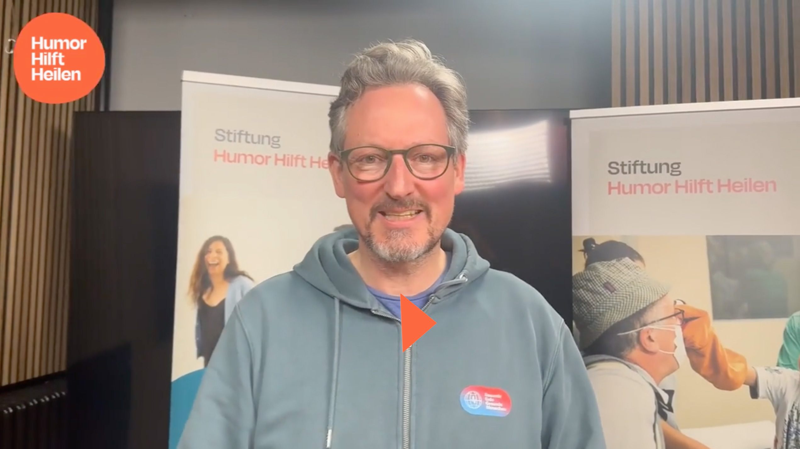 Schon das Grußwort von Dr. Eckart von Hirschhausen war humorvoll; seine Mitarbeiterinnen Maria Bley und Lea Böttger gaben einen Überblick über die Arbeit der von ihm gegründeten Stiftung „Humor hilft heilen“ (HHH). Über 12.000 Clowns-Visiten, mehr als 1.800 Humortrainings für Pflegeschüler und Pflegeteams und wissenschaftliche Evaluationen zur heilsamen Wirkung des Humors sind eine beeindruckende Bilanz. Clowns seien die Joker der Zuwendung, sie knüpfen vorsichtig Verbindungen zu Patientinnen jeden Alters und begleiten Kinder bis in den OP. Humortrainerin Mirjam Avellis führt als ausgebildete Clownin Humortrainings für die Stiftung HHH durch und berichtete aus ihrer Praxis. Ziel sei es u. a., bei Pflegenden einen Perspektivwechsel herbeizuführen, Dinge in anderem Licht zu sehen, eine gesunde Distanz zu entwickeln und gut für sich selbst zu sorgen, um der Belastung des Alltags besser standhalten zu können. Zum Thema „Real oder digital – die Kraft der menschlichen Begegnungen“ wurden zwei Clowninnen live zugeschaltet und es war beeindruckend zu sehen, wie der Funke auch von der Leinwand aufs Publikum überspringen kann, wenn man die hohe Clowns-Kunst beherrscht.